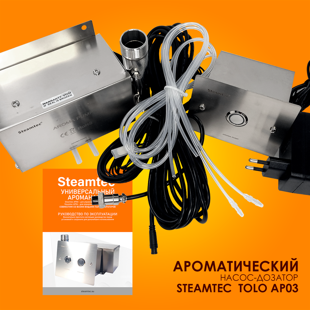 Steamtec TOLO AP 03 обеспечивает автоматическую дозировку ароматического масла в паровой поток, создавая атмосферу релаксации и благополучия. Вы можете выбрать различные ароматы в зависимости от ваших предпочтений и настроения. Этот насос-дозатор позволяет вам наслаждаться ароматерапией во время сеансов парения, создавая уникальный и приятный опыт.