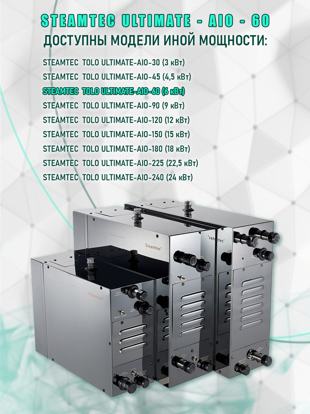 • Парогенератор Steamtec TOLO ULTIMATE AIO - заявленной мощности