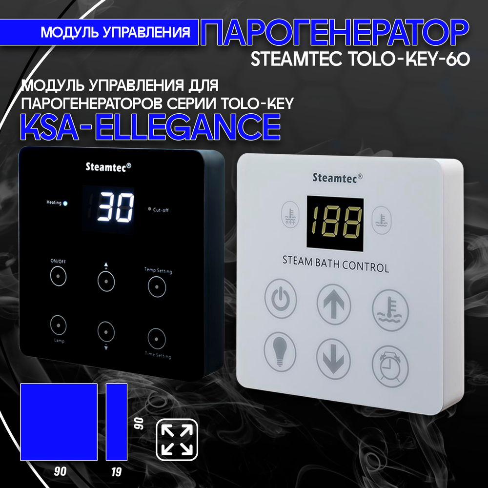 Steamtec TOLO KEY 60 - 6 кВт (стандартный модуль управления), парогенератор для хамама и турецкой бани. Получите максимальное удовольствие от посещения хамама с парогенераторами для хамама Steamtec Tolo Key! Хамам - это место, где можно погрузиться в атмосферу релаксации и оздоровления. И чтобы создать идеальные условия для этого, необходимо обеспечить правильную влажность и комфортную температуру. Именно поэтому мы предлагаем вам парогенераторы для хамама Steamtec Tolo Key. Наши парогенераторы для хамама обладают мощностью от 3 кВт до 24 кВт, что позволяет выбрать идеальную модель для вашего хамама. Благодаря этому, вы сможете наслаждаться оптимальными условиями парения, которые будут соответствовать вашим предпочтениям и потребностям. Одним из преимуществ парогенераторов для хамама Steamtec Tolo Key является возможность выбора цвета контроллера (пульта). Вы можете заказать контроллер (пульт) в белом или черном цвете, чтобы он идеально сочетался с интерьером вашего хамама. Кроме того, для тех, кто хочет установить контроллер внутри хамама, доступна опция заказа влагостойкого контроллера в белом или черном цвете.