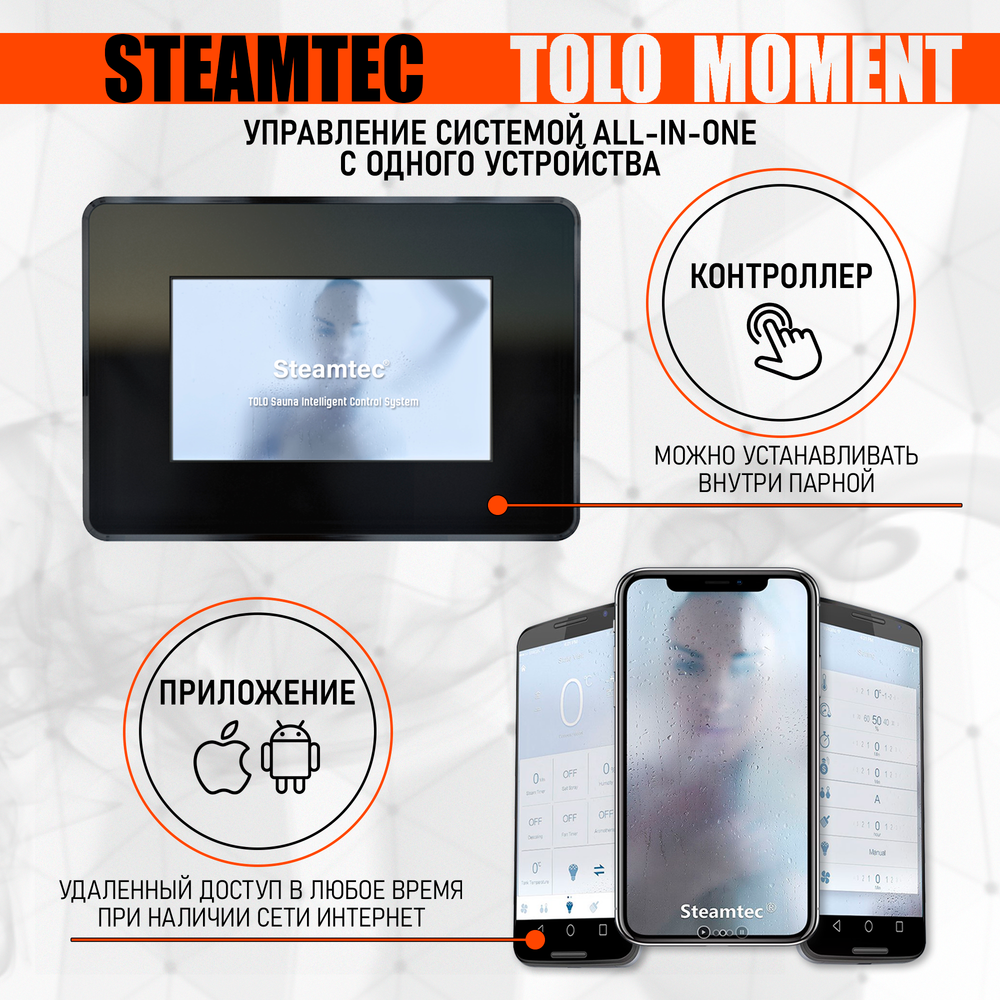 Компактный проточный парогенератор для хамама и турецкой бани Steamtec TOLO MOMENT 240 - 24 кВт станет отличным решением для вашей бани или хамама. Эта модель пользуется особой популярностью среди покупателей, благодаря сочетанию низкой цены и богатого функционала.