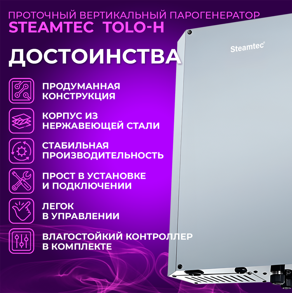 Одним из преимуществ парогенераторов для хамама Steamtec Tolo Н является влагостойкий контроллер черного цвета, он идеально сочетался с интерьером вашего хамама.