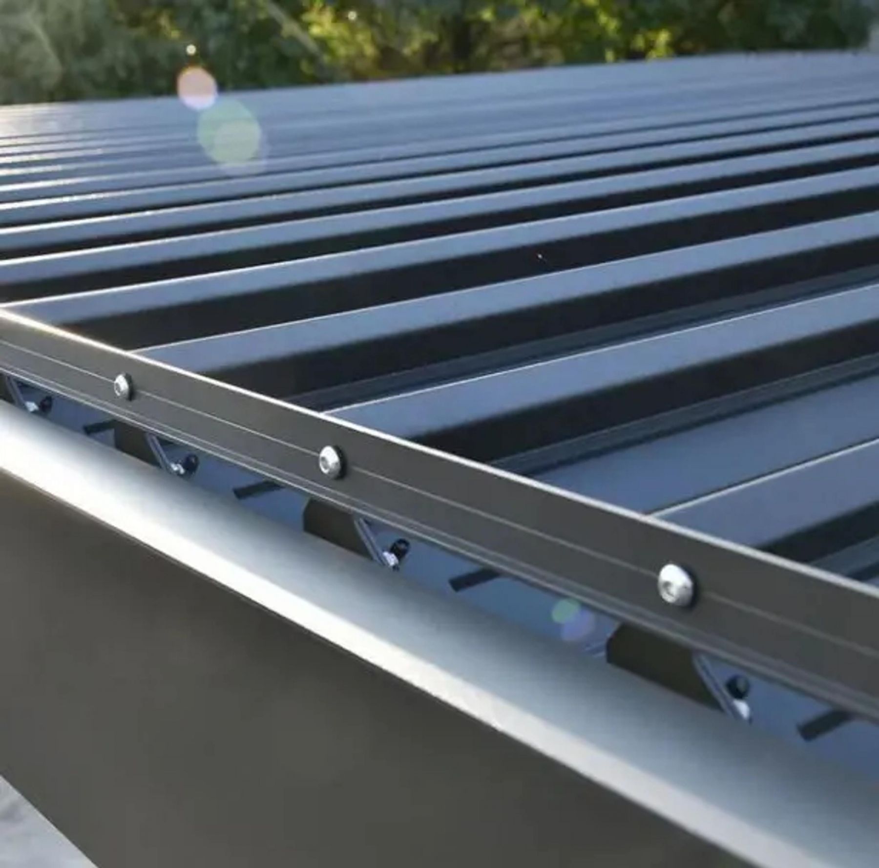 - Материал: Перголы изготавливаются из высококачественного алюминиевого профиля 6063 T5/T6, отличающегося легкостью и прочностью. Они имеют порошковое покрытие, которое устойчиво к негативным атмосферным воздействиям.