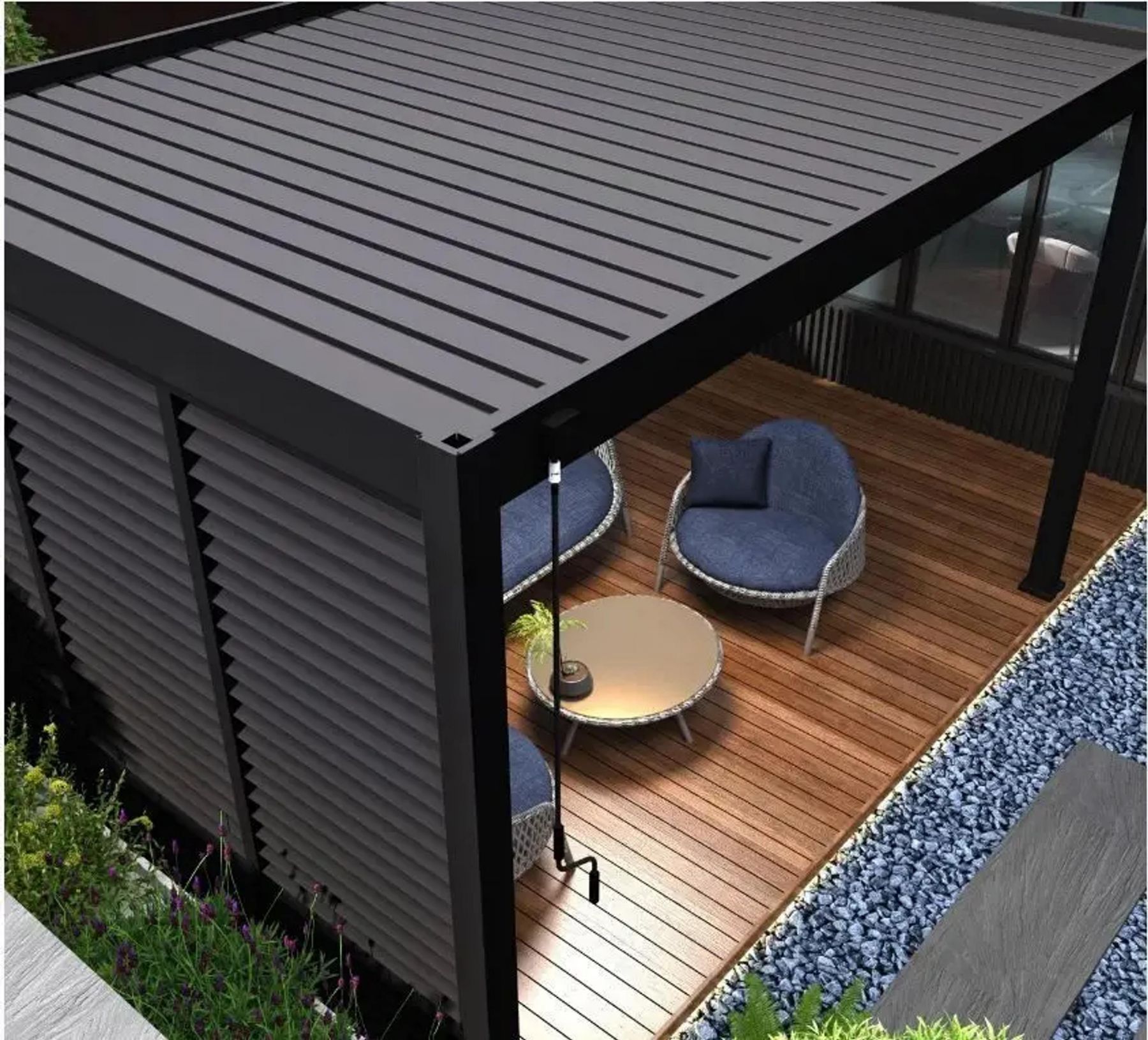 Материал: Перголы изготавливаются из высококачественного алюминиевого профиля 6063 T5/T6, отличающегося легкостью и прочностью. Они имеют порошковое покрытие, которое устойчиво к негативным атмосферным воздействиям.