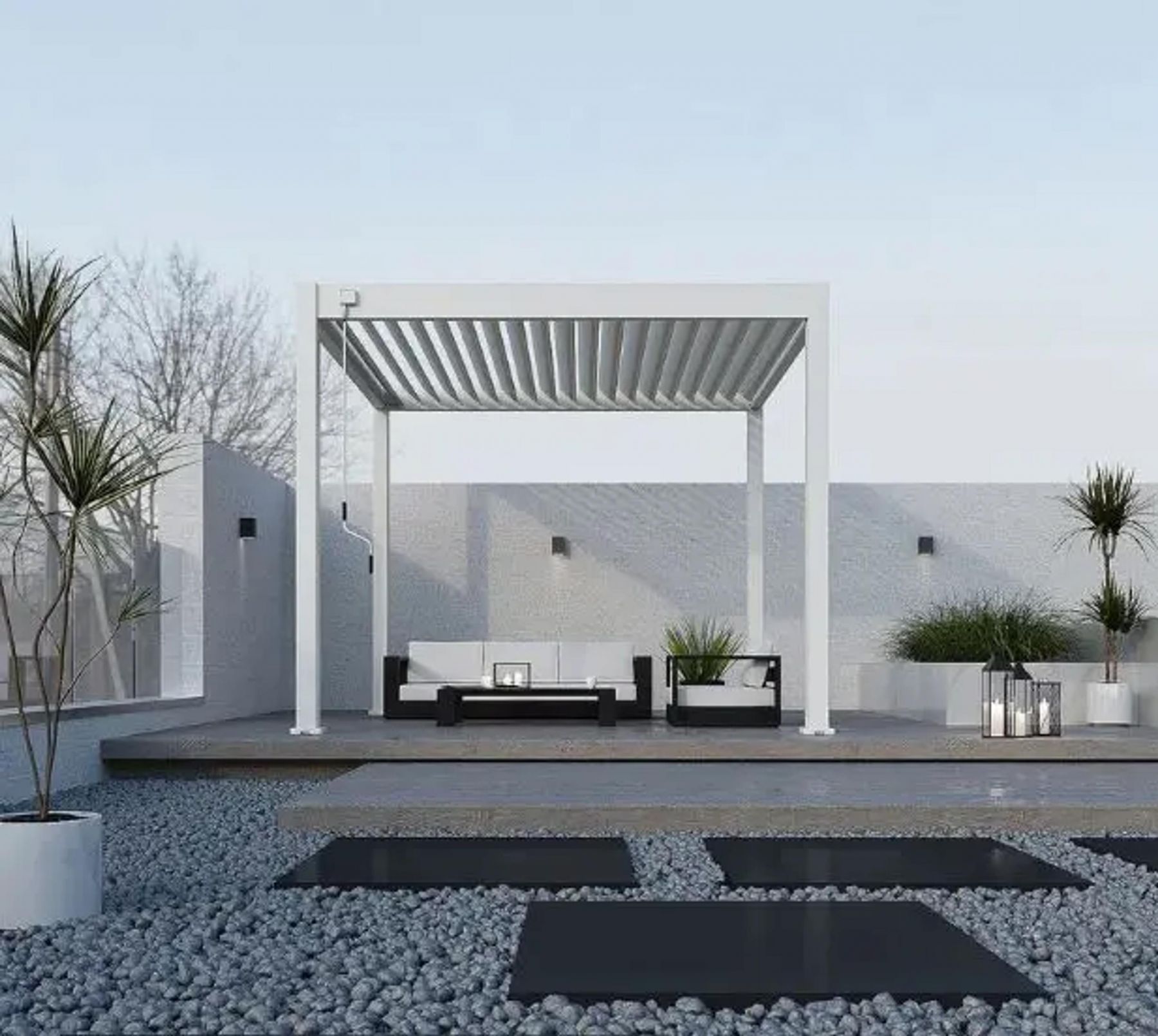 Материал: Перголы изготавливаются из высококачественного алюминиевого профиля 6063 T5/T6, отличающегося легкостью и прочностью. Они имеют порошковое покрытие, которое устойчиво к негативным атмосферным воздействиям.