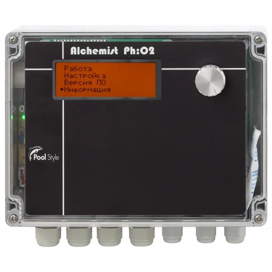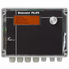 Автоматическая cтанция управления дозированием химических реагентов Alchemist PH/О2, предназначена для автоматического измерения и дозирования химических реагентов PH и О2 в систему водоподготовки плавательных бассейнов. Измерение текущего значения РН и поддержания требуемого уровня концентрации РН в воде плавательного бассейна производится автоматически, путем дозации хим. реагента РН по показателям значений датчика РН. Дозирование О2 в систему водоподготовки плавательного бассейна производится автоматически по часам реального времени. Количество дозируемого хим. реагента О2, устанавливается вручную в зависимости от объёма воды в плавательном бассейне.